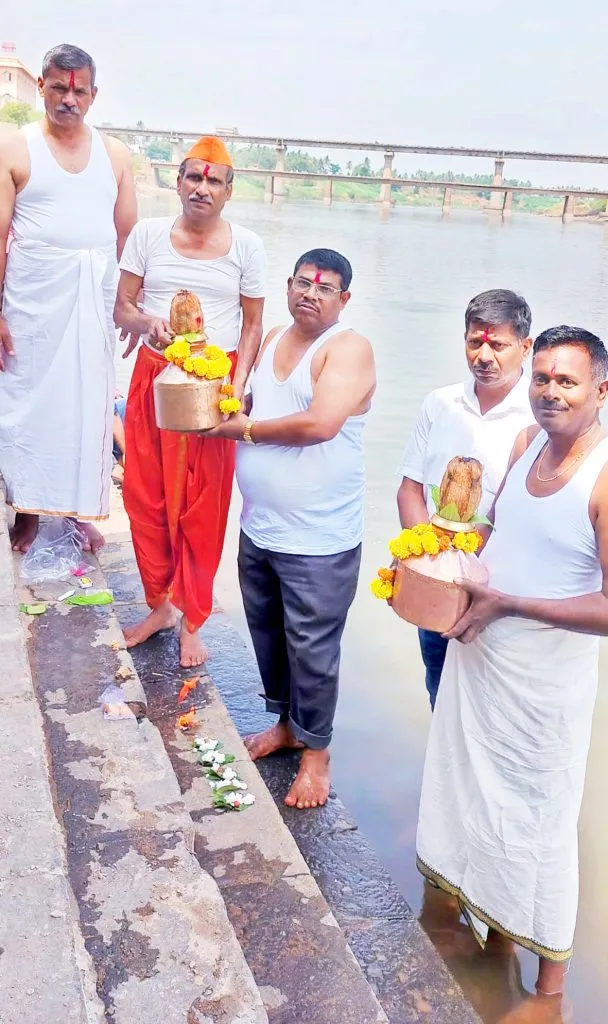 छत्रपती शिवाजी महाराज यांच्या मूर्तीला 7 नद्यांच्या पाण्याचे जलार्पण करण्यात येणार आहे. त्यामुळे येळ्ळूर विभाग महाराष्ट्र एकीकरण समितीचे पदाधिकारी कोल्हापूर येथील पंचगंगा नदीला गेले. त्या ठिकाणी जलपूजन करून पाणी घेण्यात आले. त्यानंतर नरसोबावाडी येथील पंचगंगा, वारणा आणि कृष्णा नदीच्या तिहेरी संगामातील जल घेण्यात आले आहे.
