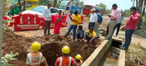 बेळगाव : हिडकलपासून शहराला जोडण्यात आलेली पाण्याची मुख्य पाईपलाईन कणबर्गी येथे फुटल्याने लाखो लिटर पाणी वाया गेले. ऐन उन्हाळ्यातच ही घटना घडल्याने महानगरपालिका आणि एलअॅण्डटी कंपनीच्या अधिकाऱ्यांना त्या ठिकाणी धाव घ्यावी लागली. त्या पाईपलाईनची दुरुस्ती करण्यासाठी तातडीने पावले उचलण्यात आली. तरीदेखील मोठ्या प्रमाणात पाणी वाया गेले. महापौर सविता कांबळे यांनी तातडीने त्या ठिकाणी भेट दिली. यावर्षी पाण्याची भीषण टंचाई निर्माण होण्याची शक्यता आहे. त्यामुळे पाईपलाईनची दुरुस्ती करणे तसेच शहरांमध्ये असलेल्या पाण्याच्या गळत्या दुरुस्त करणे महत्त्वाचे आहे. पाणीपुरवठा दाबावर देखील लक्ष ठेवणे महत्त्वाचे आहे. अन्यथा ऐन उन्हाळ्यातच पाईप फुटून पाणी वाया जाण्याची भीती व्यक्त होत आहे. कणबर्गी येथे मुख्य पाईपलाईनलाच गळती लागून मोठ्या प्रमाणात पाणी वाया गेले. मुख्य पाईपलाईनलाच गळती लागल्यामुळे दुरुस्ती करण्यासाठी मोठी कसरत करावी लागली आहे. कणबर्गी येथे पाईप फुटून मोठ्या प्रमाणात पाणी वाया गेल्याची माहिती महापौर सविता कांबळे यांना देण्यात आली. त्यानंतर त्यांनी सोमवारी सकाळी त्या ठिकाणी भेट दिली. अधिकाऱ्यांना तसेच कर्मचाऱ्यांना पाण्याची गळती तातडीने बंद करण्याची सूचना केली. याचबरोबर इतर ठिकाणी पाण्याच्या गळती असतील तर त्या देखील दुरुस्त कराव्यात, असे त्यांनी सांगितले.