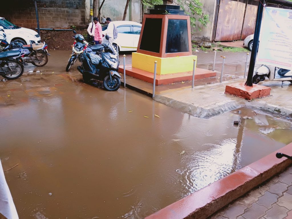 बेळगाव : तालुका पंचायतसमोर थोडासाही पाऊस झाला तर पाणी साचून राहात आहे. त्यामुळे येथील समस्या निवारण्याकडे अधिकाऱ्यांनी कानाडोळा केल्याचे दिसून येत आहे. येथील बुजलेल्या गटारी तातडीने खुल्या केल्यास सोयीचे ठरणार आहे. त्यामुळे आता याकडे अधिकाऱ्यांनी लक्ष देणे गरजेचे बनले आहे. कार्यालयासमोरच पाणी साचून राहिल्याने नागरिकांना समस्येचा सामना करावा लागत आहे. तालुका पंचायत कार्यालयासमोर मोठ्या प्रमाणात पाणी साचून राहण्याचे प्रकार घडत आहेत. मात्र याकडे कानाडोळा करण्यातच अधिकारी धन्यता मानत असल्याचे दिसून येत आहे. कार्यालयासमोर वाहने पार्किंग करणाऱ्या दुचाकीस्वारांना याचा फटका सहन करावा लागत आहे. दरम्यान काही दिवसांपासून येथे पाणी साचत असल्याने डासांचा प्रादुर्भावही वाढला आहे. त्यामुळे अधिकारी व कार्यालयात कामासाठी येणाऱ्या नागरिकांचे आरोग्यही धोक्यात आले आहे. तरी येथील पाणी निचरा होण्यासाठी योग्य ते पावल उचलावे, अशी मागणी होत आहे.