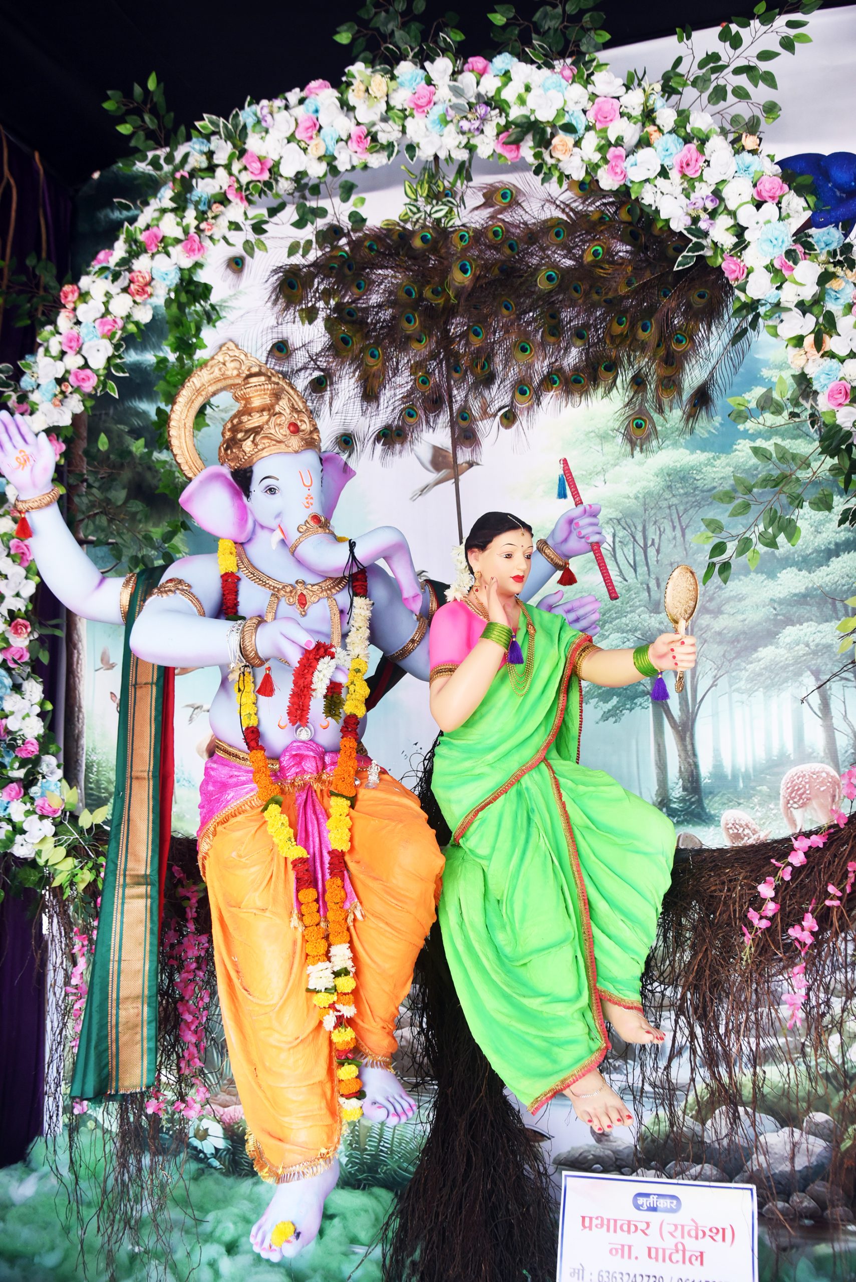 कलमेश्वर गल्ली, येथील शेतकरी-कामगार मंडळाची आकर्षक मूर्ती. (मूर्तिकार- बाबू मेलगे)