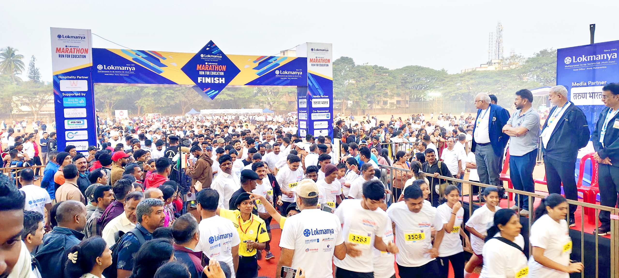 लोकमान्य मॅरेथॉन स्पर्धेत सहभागी झालेले युवा व आबालवृद्ध.