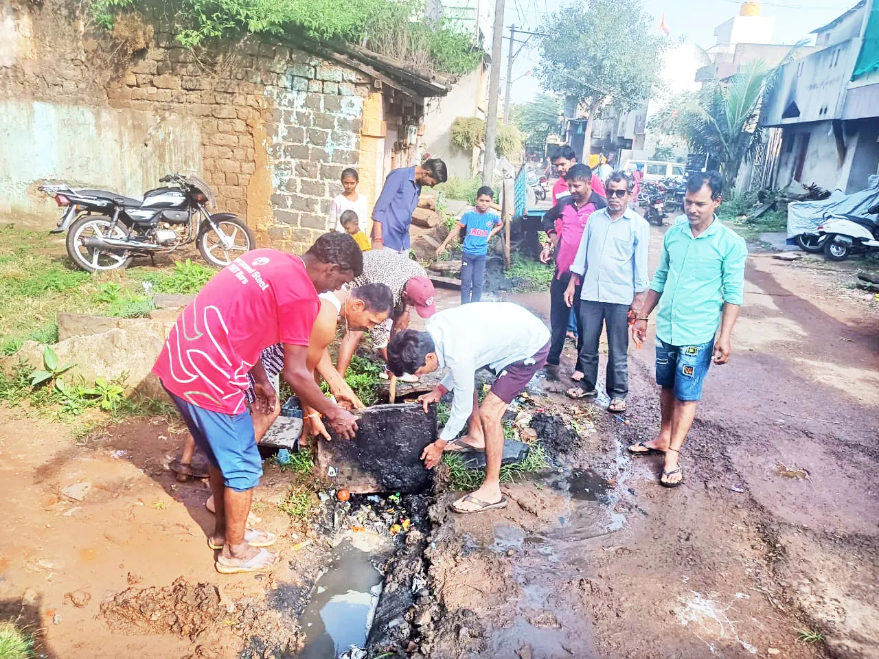 तानाजी युवक मंडळाच्या कार्यकर्त्यांनी केल्या गटारी साफ : कार्यकर्त्यांचे कौतुक