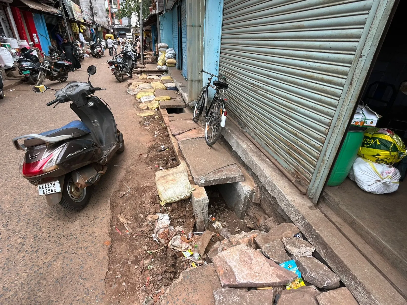 बेळगाव : कांदा मार्केट परिसरात मागील तीन महिन्यांपासून गटारींचे बांधकाम ठप्प आहे. काम अर्धवट स्थितीत असल्यामुळे परिसरातील व्यापाऱ्यांना त्याचा फटका बसत आहे. रात्रीच्यावेळी गटारीमध्ये पडून नागरिक जखमी होत आहेत. महापालिकेच्या दुर्लक्षामुळे नागरिकांची गैरसोय होत आहे. शहराची बाजारपेठ समजल्या जाणाऱ्या रविवार पेठ, कांदा मार्केट परिसरात मागील काही महिन्यांपासून गटारींचे बांधकाम केले जात आहे. जुन्या गटारी काढून त्याठिकाणी नव्या गटारी बांधण्यात येत आहेत. परंतु हे काम अत्यंत संथगतीने सुरू आहे. सध्या सण-उत्सव, लग्न सराईमुळे खरेदीसाठी मोठी गर्दी होत आहे. केवळ बेळगावच नाही तर गोवा, गोकाक, कोकणातील खरेदीदार शहरात येत आहेत. त्यांना या गैरसोयीचा फटका बसत आहे. कांदा मार्केट येथे रस्ते अरुंद असल्यामुळे गर्दीच्या वेळी ये-जा करणे अवघड होते. अशातच गटारींचे काम अर्धवट स्थितीत असल्यामुळे नागरिकांची गैरसोय होत आहे. याचा फटका व्यापाऱ्यांनाही बसत असल्यामुळे गटारीचे काम लवकर पूर्ण करण्याची मागणी नागरिकांतून होत आहे.