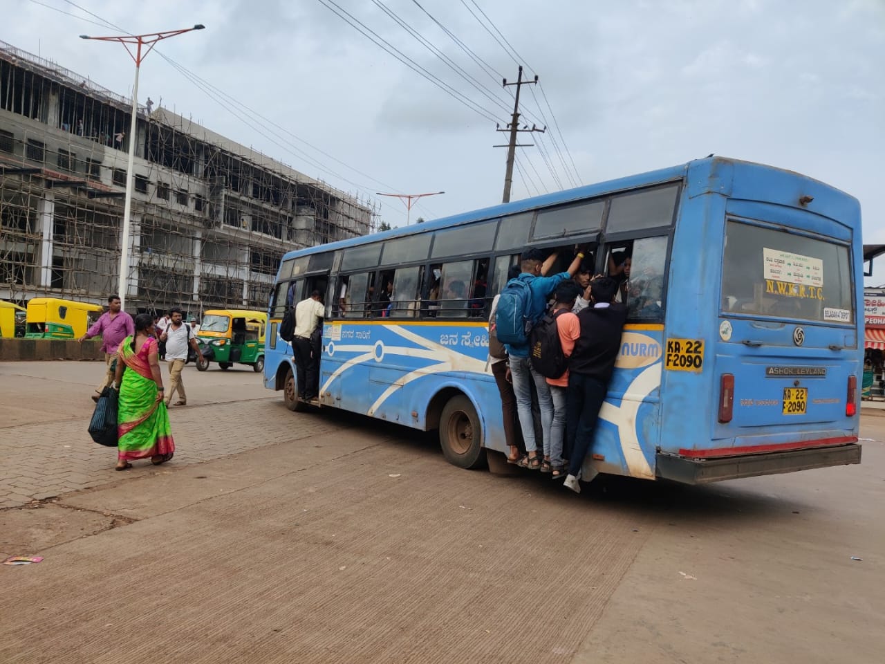 बेळगाव : प्रवाशांच्या तुलनेत बसफेऱ्यांची संख्या कमी झाल्याने जीवघेणा प्रवास सुरू आहे. अपुऱ्या बससेवेमुळे प्रवाशांना लोंबकळत प्रवास करण्याचा प्रकार सुरू आहे. शक्ती योजनेंतर्गत महिलांचा मोफत प्रवास सुरू आहे. तर दुसरीकडे बसफेऱ्या कमी असल्याने सर्वसामान्यांना लोंबकळत धोकादायक प्रवास करावा लागत आहे. याकडे परिवहन गांभीर्याने पाहणार का? असा प्रश्न उपस्थित होऊ लागला आहे. मागील दोन महिन्यांपासून प्रवासी संख्येत प्रचंड प्रमाणात वाढ झाली आहे. विशेषत: महिला प्रवाशांची संख्या वाढली आहे. त्यामुळे अनेक ठिकाणी बसफेऱ्या कमी झाल्याचे दिसत आहे. परिणामी मिळेल त्या बसने प्रवास करावा लागत आहे. दरम्यान काही प्रवाशांना आणि विद्यार्थ्यांना दरवाजात लोंबकळत जीवघेण्या प्रवासाला सामोरे जावे लागत आहे. त्यामुळे प्रवाशांची फरफट थांबणार कधी? असा प्रश्न पडू लागला आहे. विशेषत: सकाळ व सायंकाळच्या सत्रात प्रवाशांच्या संख्येत वाढ होऊ लागली आहे. त्यामुळे प्रवासी आणि विद्यार्थ्यांची बस पकडण्यासाठी धडपड सुरू असलेली पहावयास मिळत आहे. अपुऱ्या बससेवेमुळे प्रवाशांना मिळेल त्या बसने धोकादायक प्रवास करावा लागत आहे. शक्ती योजना सुरू झाल्यापासून बसफेऱ्या कमी झाल्या आहेत. त्यामुळे ही परिस्थिती निर्माण झाली आहे. सकाळ आणि सायंकाळच्या वेळेत बसमध्ये चढण्यासाठी धावपळ सुरू असते. शिवाय सीट पकडण्यासाठी चढाओढ होते. त्यामुळे दुर्घटनेची भीतीही व्यक्त होऊ लागली आहे.
