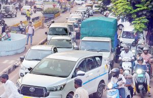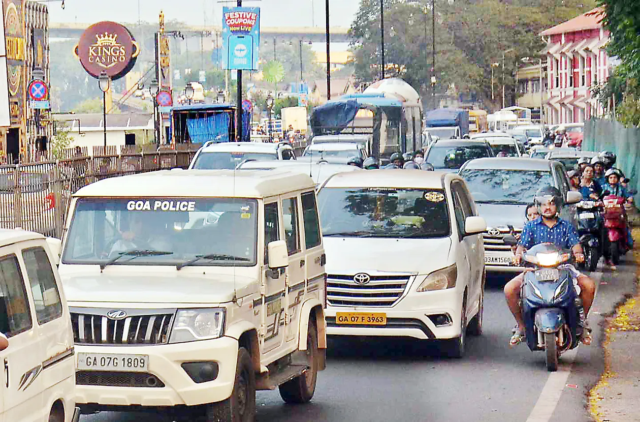 वाहतूक पोलिसांच्या दुर्लक्षामुळे पणजीत असह्या कोंडी : सकाळपासून सायंकाळपर्यंत वाहतुकीचे वाजले तीनतेरा
