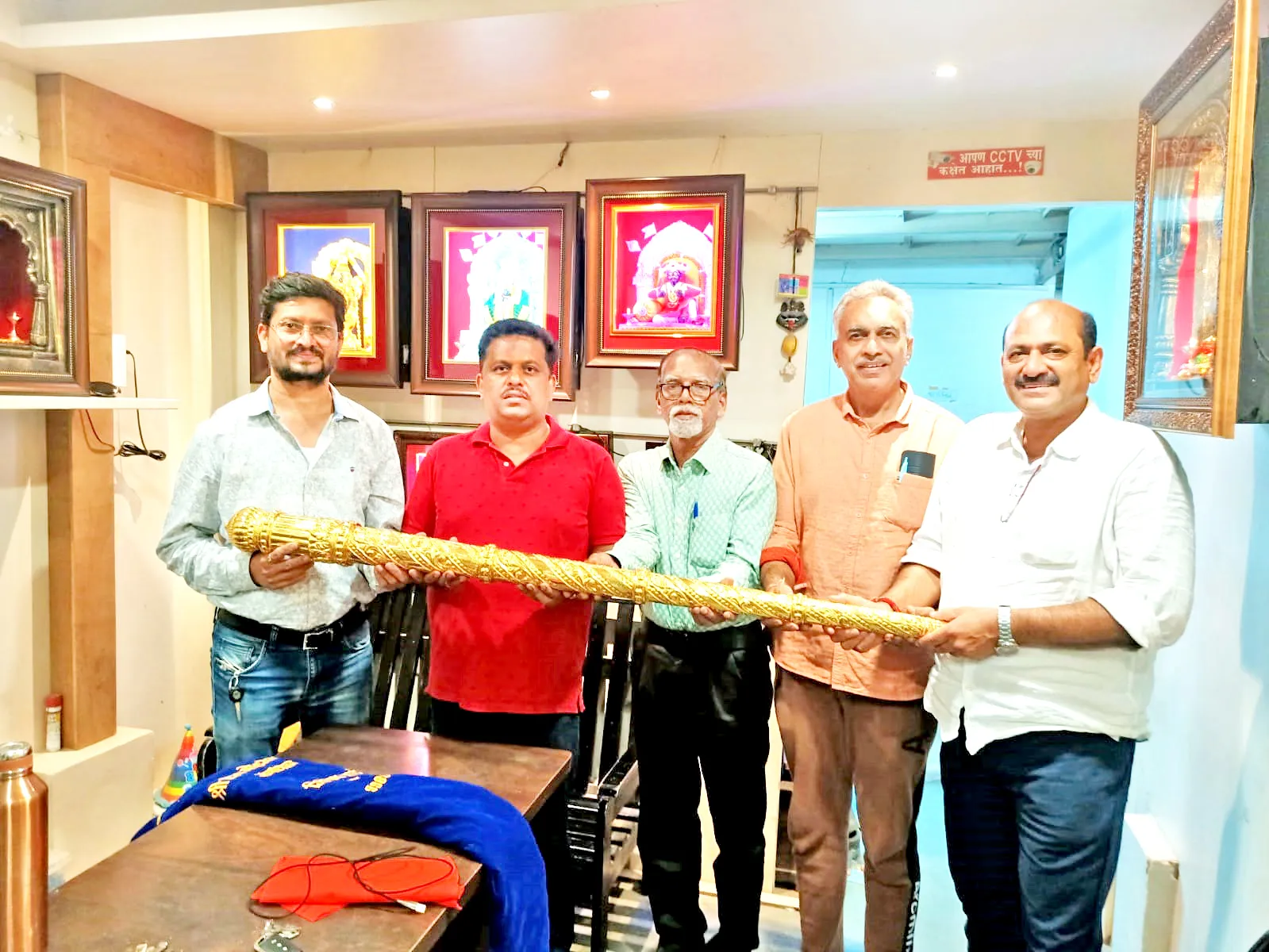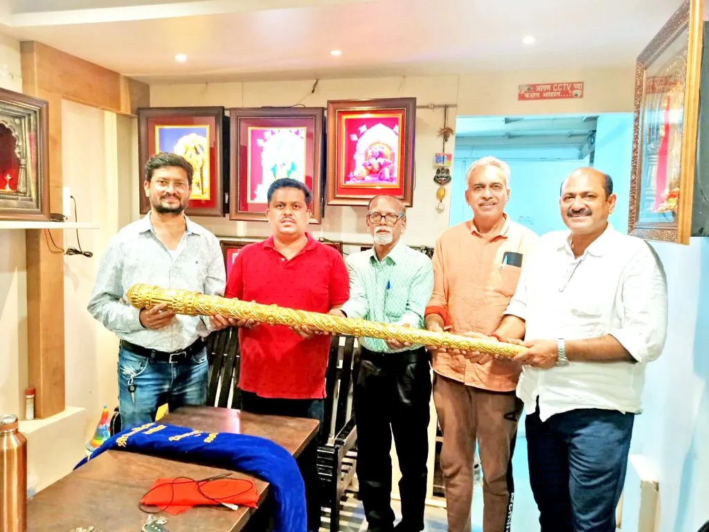 कोल्हापूर येथून सुमारे 70 लाख खर्चून देवासाठी खास सोन्याचा दंड बनवून आणण्यात आला असून तो विधीवत सकाळी 9.30 वा. देवाला अर्पण करण्यात येणार आहे अशी माहिती आनंद भाईडकर यांनी दिली.