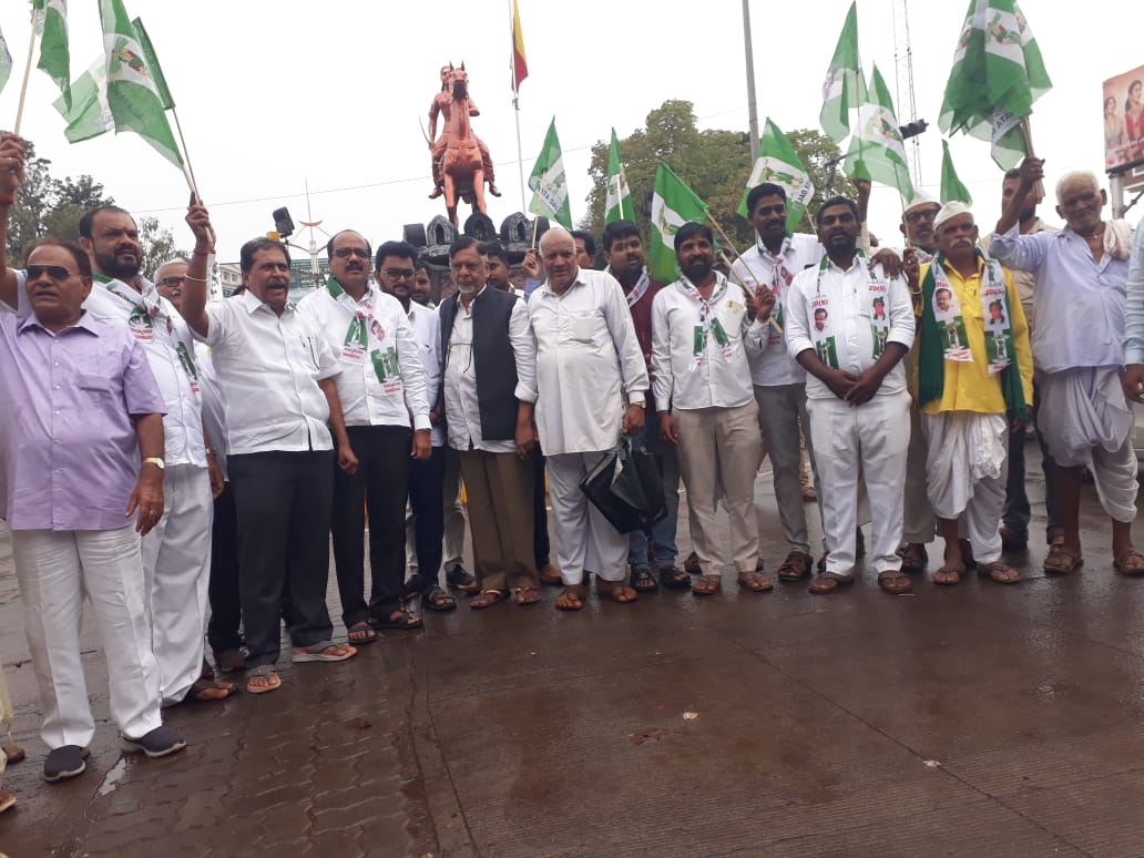 चन्नम्मा चौकात निजदची निदर्शने : जिल्हाधिकाऱ्यांना निवेदन : दुष्काळ परिस्थितीमुळे शेतकरी आर्थिक संकटात