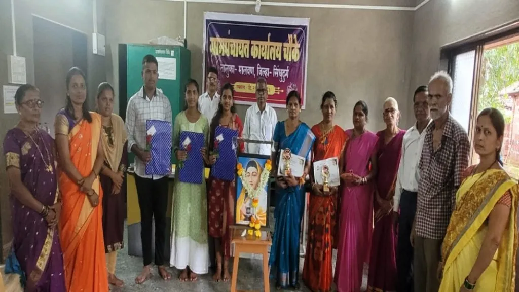 चौके ग्रामपंचायतीच्या वतीने देण्यात येणार्या पुण्यश्लोक अहिल्याबाई होळकर पुरस्कारासाठी चौके गावातील श्रीम. प्राची प्रशांत कुबल व श्रीम. विशाखा विजय पार्टे यांची निवड करण्यात आली.या पुरस्कार वितरणाचा कार्यक्रम शनिवार या पुण्यश्लोक अहिल्याबाई होळकर जयंतीदिनी चौके ग्राम पंचायत सरपंच पी.के.चौकेकर यांच्या अध्यक्षेतेखाली चौके ग्राम पंचायत कार्यालयामध्ये संपन्र झाला.यावेळी मालवण तालुक्यातील सर्वोत्कृष्ट आशा स्वयंसेविका पुरस्कार मिळाल्याबद्दल चौके आशा स्वयंसेविका सौ.सिध्द्दाली गावडे यांचा सत्कार यावेळी चौके ग्राम पंचायतीच्या वतीने करण्यात आला.यावेळी सुरुवातीला अहिल्याबाई होळकर यांच्या प्रतिमेला मीरा सावंत याच्या शुभहस्ते पुष्पहार अर्पण करून अहिल्याबाई होळकर जयंती साजरी करण्यात आली. यावेळी चौके हायस्कुलमधून प्रथम तीन क्रमांकाने उत्तीर्ण झालेल्या निहारिका महेश सावंत,समिक्षा धोंडी सडवेलकर व श्रीयन सतेज चव्हाण याचा सत्कार करण्यात आला. यावेळी सरपंच पी.के चौकेकर,मीरा सावंत,विजय चौकेकर,संतोष गावडे,नितिन गावडे, सिद्धाली गावडे,प्राची कुबल,विशाखा पार्टे यांनी आपले मनोगत व्यक्त केले यावेळी ग्राम पंचायत सदस्य,ग्राम पंचायत कर्मचारी व ग्रामस्थ,अगंणवाडी सेविका,मद्दतनिशी,बचट गटाच्या महिला मोठ्या संख्येने उपस्थित होते.कार्यक्रमाचे सूत्रसंचालन सुविधा सावंत व आभार मेघा वराडकर यांनी मानले.