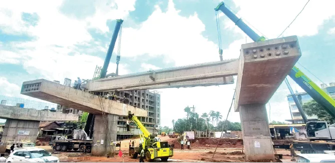 शुक्रवारी उड्डाणपुलाच्या एका बाजूने गर्डर चढविण्याचे काम सुरु करण्यात आले. ३९२ गर्डर गर्डर उभारण्यासाठी दोन टीम काम करत असून प्रत्येकी १५० टन वजनाच्या दोन क्रेन, ५० फुटी दोन ट्रेलर कार्यरत आहेत. दरम्यान, मागील ४ दिवस पावसाने थोडीशी उसंत दिल्याने लांजा शहरातील महामार्गाच्या कामाला गती आली आहे. सर्व्हिस रोड, पाण्याची पाईपलाईन, गटार कामे आदी कामे पूर्ण करण्याच्या दृष्टीने कामे गतीने सुरू आहेत