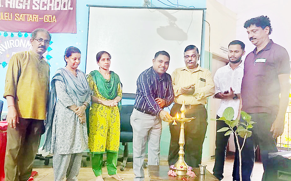 वाळपई : शैक्षणिक वर्षाच्या प्रारंभी, सरकारी माध्यमिक विद्यालय गुळेली सत्तरी येथे जागतिक पर्यावरण दिन साजरा करण्यात आला. यावेळी व्यासपीठावर प्रमुख पाहुणे म्हणून शाळेचे मुख्याध्यापक सूरज नाईक, जेष्ठ शिक्षक दिलीप पालेकर, अजित राणे, शिक्षिका शीतल लाड, अपर्णा सावईकर, संयोजक प्रेमानंद च्यारी, शारीरिक शिक्षक अनुध्य पोकळे उपस्थित होते. सर्वप्रथम कल्पिता गावडे व साथी यांनी पर्यावरण गीत सादर केले . प्रमुख पाहुणे व विद्यार्थिनी यांनी लावलेल्या झाडाच्या रोपासमोर दीप प्रज्वलित केला. शिक्षक प्रेमानंद चारी यांनी पर्यावरण दिन साजरा करण्याचा उद्देश स्पष्ट केला. विद्यार्थी बबन पाटकेरो याने पर्यावरण व त्याचे घटक ह्या बद्दल आपले विचार मांडले. शिक्षिका शीतल लाड यांनी पर्यावरण, त्याची होत असणारी हानी व याचा आपल्यावर होणारा प्रभाव ह्या बद्दल माहिती सांगितली . मुख्याध्यापक सूरज नाईक निसर्गाच्या संवर्धन प्रक्रियेसाठी करण्यात येणार्या उपाय योजना व त्यावर नागरिक म्हणुन आपली भूमिका कशी असावी या बद्दल मौलीक मार्गदर्शन केले. प्रयोगशाळा सहाय्यिका अक्षता हळदणकर हिच्या आभार प्रदर्शनाने कार्यक्रमाची सांगता झाली. पर्यावरण दिवसाची जागृती म्हणुन आपल्या जवळ असलेली सामुग्री वापरून पक्ष्यांच घरट तयार करणे व फुलदाणी (फ्लॉवरपॉट) तयार करणे ह्या स्पर्धा घेण्यात आल्या. त्यात गौरांग ओपकर , मैथिली गावडे, रश्मी नाईक यांना अनुक्रमे प्रथम, द्वितीय, तृतीय अशी बक्षिसे प्राप्त झाली.