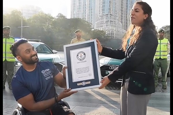 गिनिज वर्ल्ड रेकॉर्ड्सने एक व्हिडिओ शेअर केला आहे. हा व्हिडिओ सर्वांना आश्चर्यचकित करणारा तसेच प्रेरणा देणारा देखील आहे. या व्हिडिओमध्ये व्हिलचेअरवर बसलेली एक व्यक्ती दुबईतील रस्त्यांवरून फिरताना दिसून येते, या व्यक्तीने जगातील सर्वात मोठे जीपीएस ड्रॉइंग तयार केले आहे.