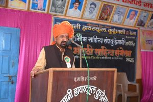 श्री बलभीम साहित्य संघ कुद्रेमनी आयोजित 19 व्या मराठी साहित्य संमेलनाचे अध्यक्ष या नात्याने ते बोलत होते. कुद्रेमनीच्या कै. परशुराम मिनाजी गुरव साहित्यनगरीमध्ये कै. ईश्वर कल्लाप्पा गुरव व्यासपीठावर झालेल्या या संमेलनाचे उद्घाटन मार्कंडेय साखर कारखान्याचे अध्यक्ष आर. आय. पाटील यांच्या हस्ते करण्यात आले. व्यासपीठावर अॅड. शाम पाटील, प्रा. चंद्रकांत पोतदार, अॅड. सुधीर चव्हाण, बाळाराम पाटील, विनायक व माणिक होनगेकर, अशोक कांबळे, साहित्य संघाचे अध्यक्ष शिवाजी मुरकुटे, विनायक मुरकुटे आदी मान्यवर उपस्थित होते.