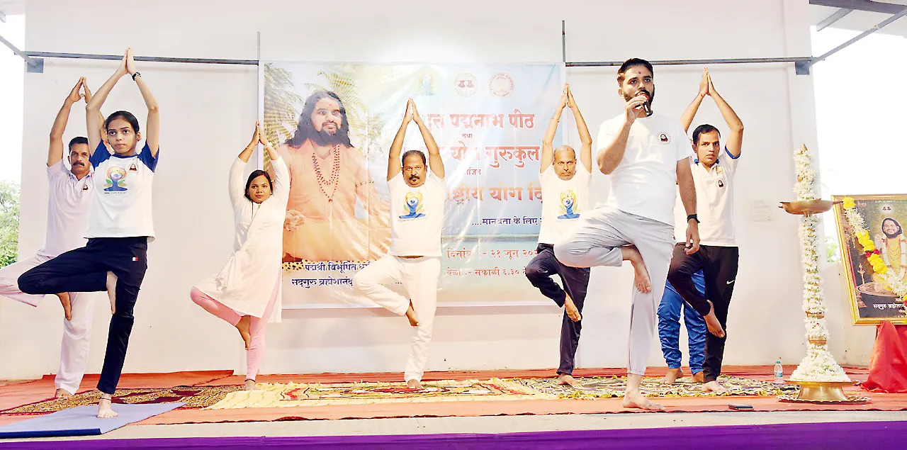 दरम्यान, स.7 वा. सद्गुरुंच्या नामस्मरणाने व अतिथिंच्या हस्ते दीप्रज्वलनाने कार्यक्रमाची सुरुवात झाली. मांदे संत समाजाचे अध्यक्ष महेश गोडकर यांनी मान्यवरांचे स्वागत व कार्यक्रमाचे सूत्रसंचालन केले तर प्रास्ताविक दत पद्मनाभ पीठाचे संचालक आदरणीय संजय कळंगुटकर यांनी केले. नियमित योगासन केल्याने शारिरीक व मानसिक ऊर्जेच्या विकासासोबत तणाव आणि नैराश्य कमी कमी होते. याद्वारे शरीर निरोगी आणि मन शांत ठेवण्यासाठी योगा एक वरदान आहे, असे प्रतिपादन श्रीराज शेलार यांनी केले.