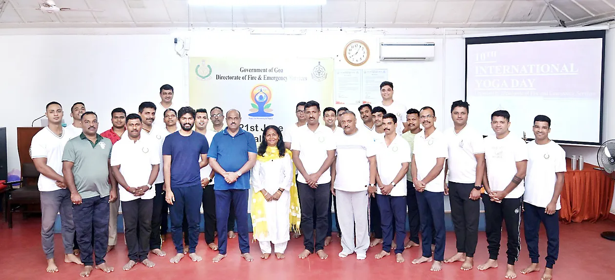 यावेळी योग आर्ट ऑफ लिव्हींगचे प्रशिक्षक अथर्व परब, अग्निशमन आणि आपत्कालीन सेवा संचालनालयाचे संचालक नितीन रायकर, इतर अधिकारी व जवान उपस्थित होते. अग्निशमन आणि आपत्कालीन सेवा संचालनालयाने आर्ट ऑफ लिव्हिंगचे संस्थापक गुऊदेव श्री श्री श्री रविशंकर, गोवा चॅप्टर यांच्या संयुक्त विद्यमाने 21 रोजी सकाळी 7 वाजता अग्निशमन दलाच्या मुख्यालयात आंतरराष्ट्रीय योग दिवस साजरा केला. दलाच्या अधिकाऱ्यांना व जवानांना योगाची प्रात्यक्षिके करून दाखवल्यानंतर त्यांना योगाचे प्रकार नियमित कशाप्रकारे करावेत तसेच त्या चे शरीराला व मनाला होणारे फायदे यासंबंधी योग प्रशिक्षक श्रद्धा परब व अथर्व परब यांनी मार्गदर्शन केले.