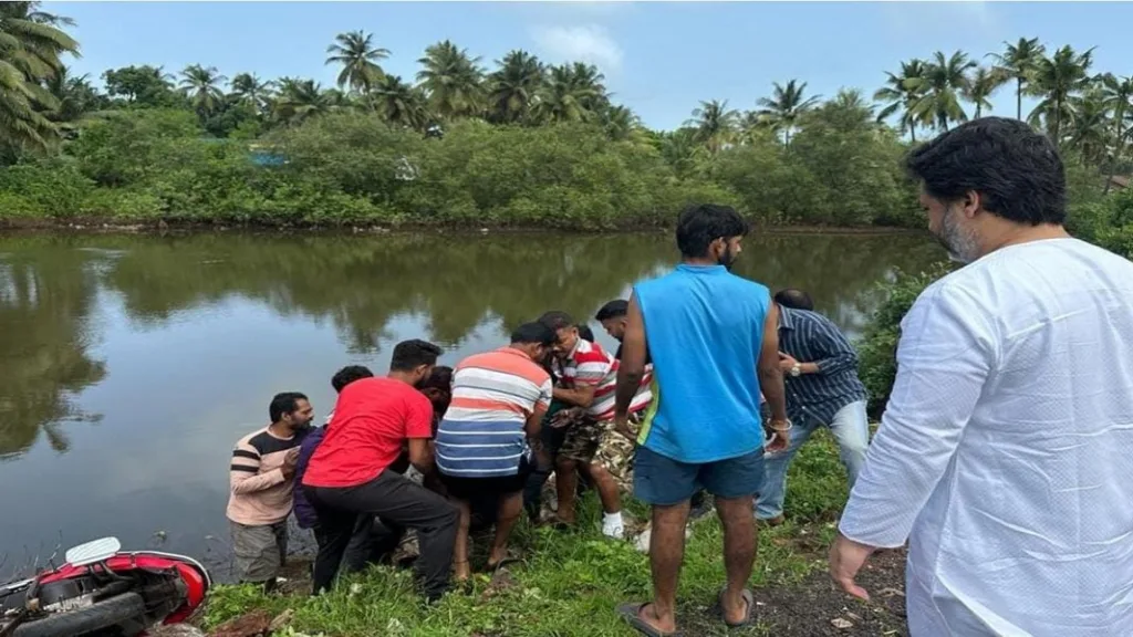 माजी खासदार निलेश राणे यांनी ताफा थांबवत मदतकार्यात घेतला सहभाग