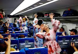 जपानमध्ये टोकियोहून ओसाका येथे जाणाऱ्या बुलेट ट्रेनमध्ये जॉम्बी थीमवर एक पार्टी आयोजित करण्यात आली. रेल्वेतून प्रवास करणारे लोक अचानक स्वत:च्या आजूबाजूला जॉम्बी पाहून रोमांचित झाले. या अॅडव्हेंचरस ट्रिपमध्ये 40 जण सामील झाले. हा इव्हेंट हॅलोवीन डेपूर्वी झाला आहे.